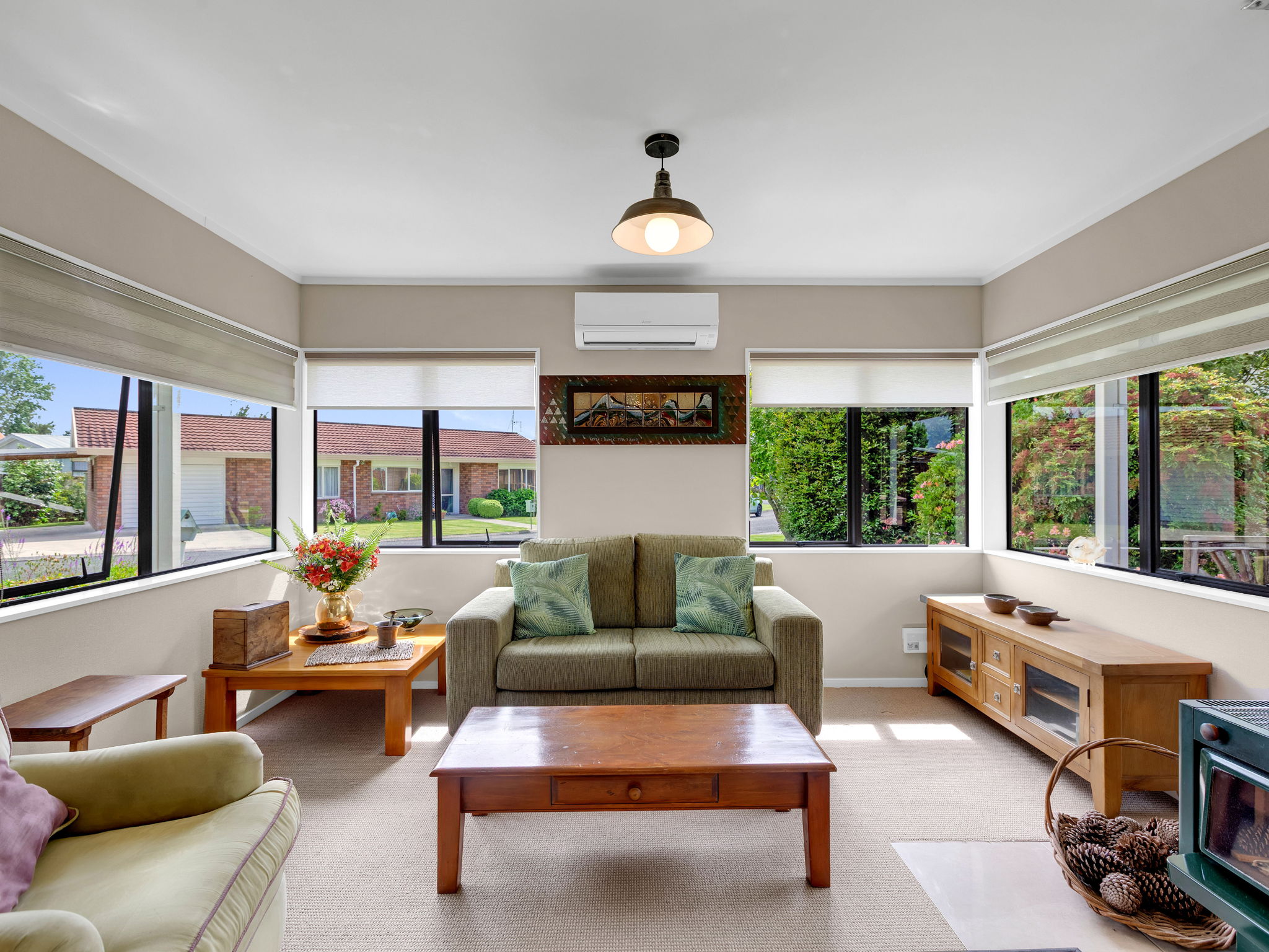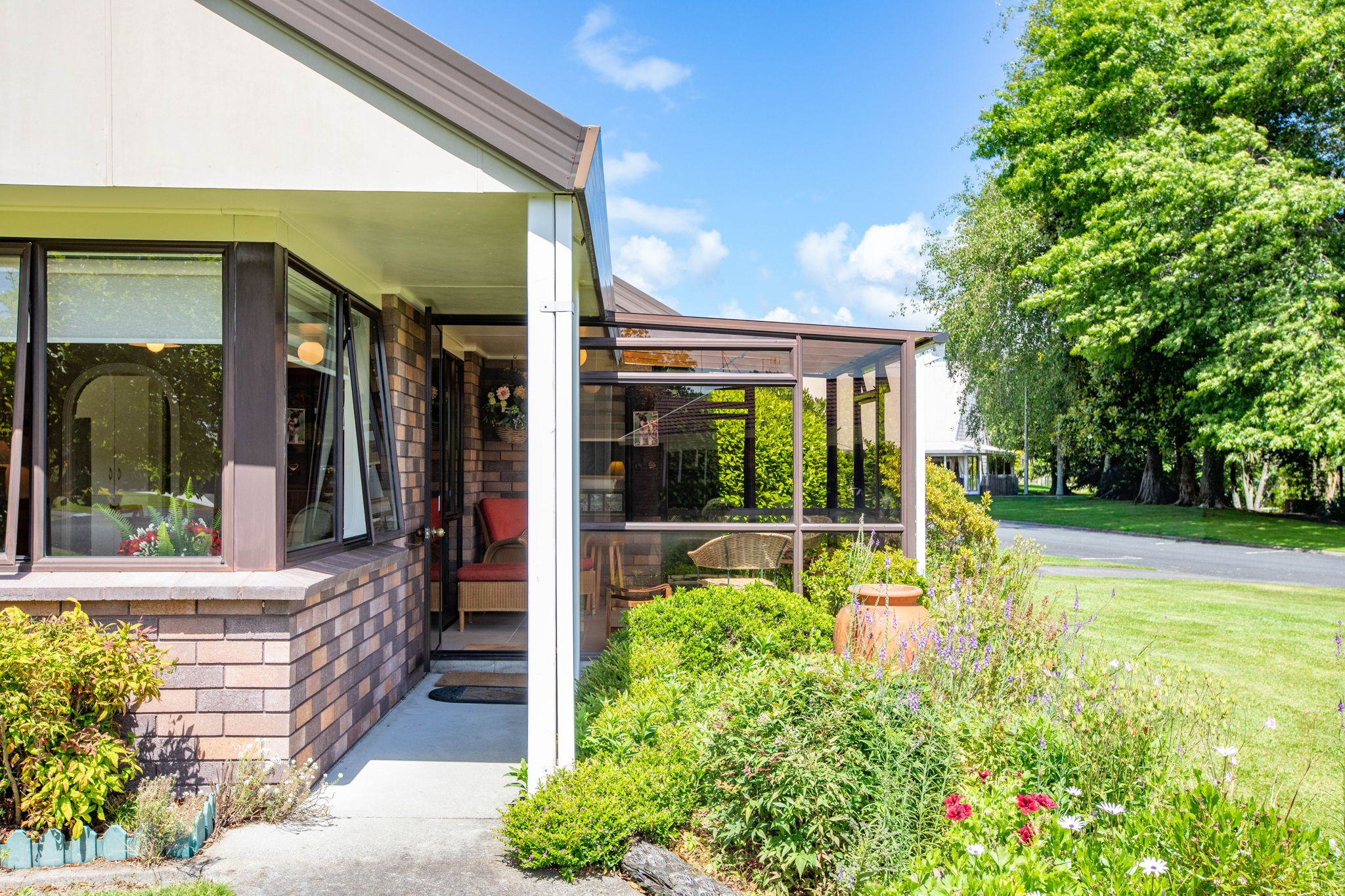 This warm and welcoming brick home sits in what is widely regarded as one of the more appealing positions in the village, offering a peaceful outlook, privacy, and a genuine sense of comfort from the moment you arrive. The open plan lounge and dining area looks out across established plantings and through to the wider village grounds and bowling green. A wood burner and heat pump keep the home comfortable through all seasons, while the spacious conservatory adds an extra living area that is ideal for morning sun, reading, hobbies, or enjoying time with visitors. The separate kitchen is well laid out with good storage and easy access to appliances. Two bedrooms sit quietly to one side of the home, and the well-designed wet-style bathroom caters smoothly for all requirements. Internal access garaging provides secure entry. The corner position is a real highlight, giving you more space around the home and an easy stroll to the lake and village Centre. The gardens have been cared for over many years, creating a setting that feels calm and inviting. Designed for residents aged 55 and over, this village offers freehold unit title ownership along with a friendly community, tree-lined grounds, birdlife, walking areas, and shared facilities such as the bowling green, library, games and function rooms, and community spaces. Homes in this environment are tightly held. This one offers comfort, care, and a position that stands out.